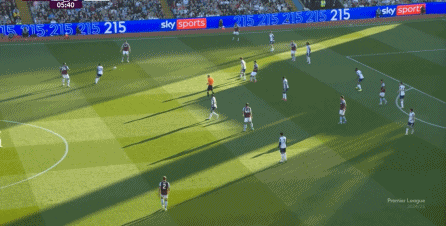 于是在之后的防守中,你可以看到維拉通過45度傳中的方式,很快就開始打出了進攻威脅: