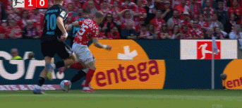 第35分鐘,內(nèi)貝爾禁區(qū)內(nèi)低射破門,美因茨1-0!