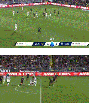 上半場(chǎng)第2分鐘,尤文就丟球了,哈普斯妙傳,菲拉幫助威尼斯取得領(lǐng)先。