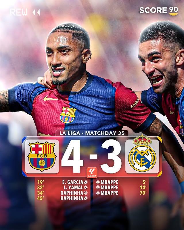 西甲第35輪,巴薩4-3皇馬