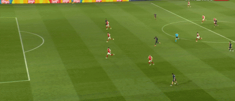 在巴黎圣日耳曼連續(xù)制造殺機(jī)之前,他們?cè)L(zhǎng)時(shí)間處于被動(dòng)挨打的狀態(tài)。通過(guò)強(qiáng)硬的前場(chǎng)逼搶獲得快攻機(jī)會(huì),連續(xù)從兩翼送出傳中,賴斯和梅里諾在門前組成雙中鋒,托馬斯多次將“手榴彈”擲入禁區(qū)……阿森納的戰(zhàn)術(shù)就是將身體對(duì)抗方面的優(yōu)勢(shì)最大化,依靠簡(jiǎn)單直接的沖吊打法去沖擊球門。