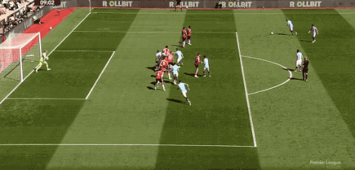 下半場(chǎng)開(kāi)始后情況依舊,曼城繼續(xù)主攻,南安普頓眾志成城全力防守。第60分鐘,曼城獲得前場(chǎng)任意球,福登將球吊入禁區(qū),哈蘭德在拼搶之下沒(méi)能碰到皮球。