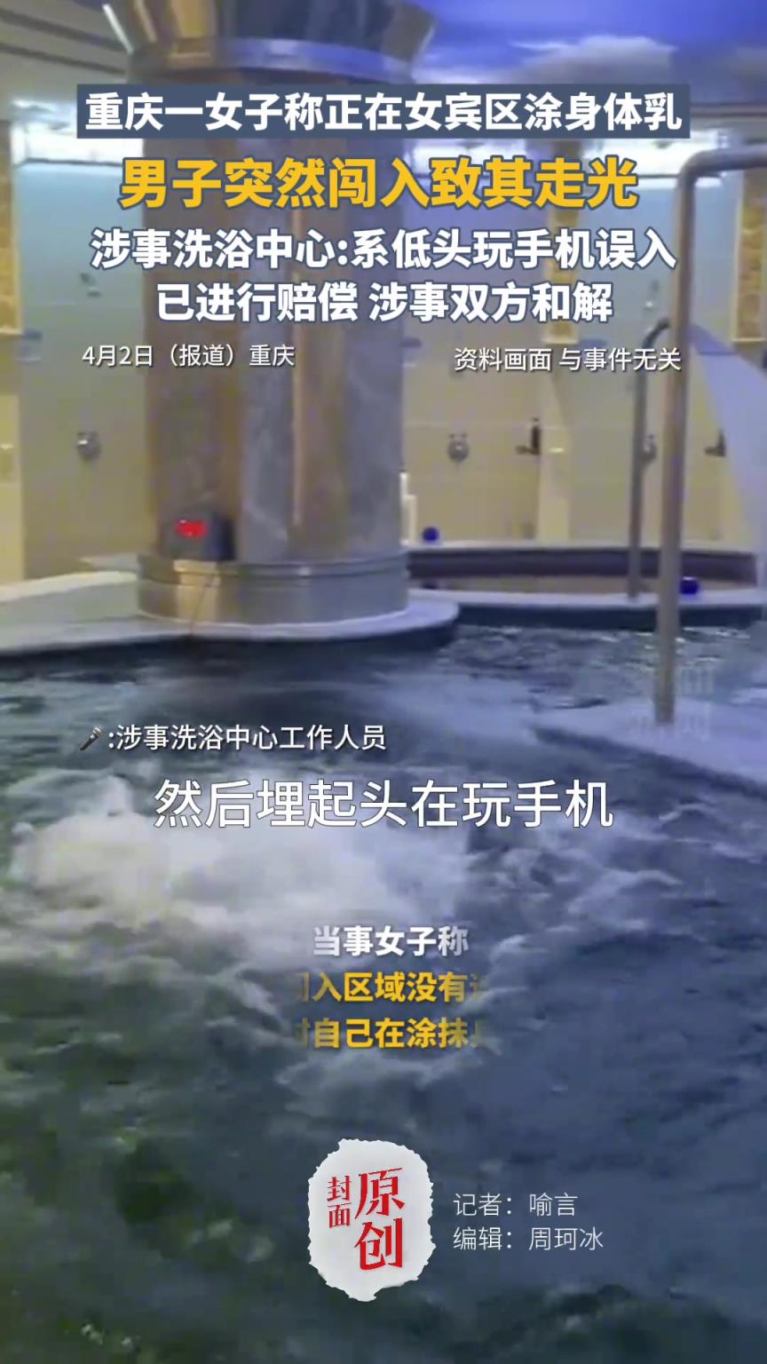 女子正在女賓區(qū)涂身體乳,男子突然闖入致其走光??!